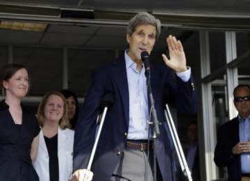 US Secretary of State John Kerry said he was fully engaged in the Iran nuclear negotiations and would join them at the end of June as he left the hospital after treatment for a broken leg.