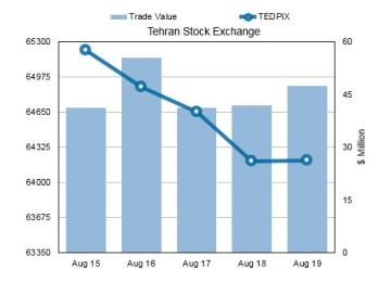 Iran-Fara-BourseTehran Stock Exchange’s rollercoaster ride wrapped up the week that ended September 2 in green with the overall index edging up 70 points or 0.11% compared to the previous trading week.